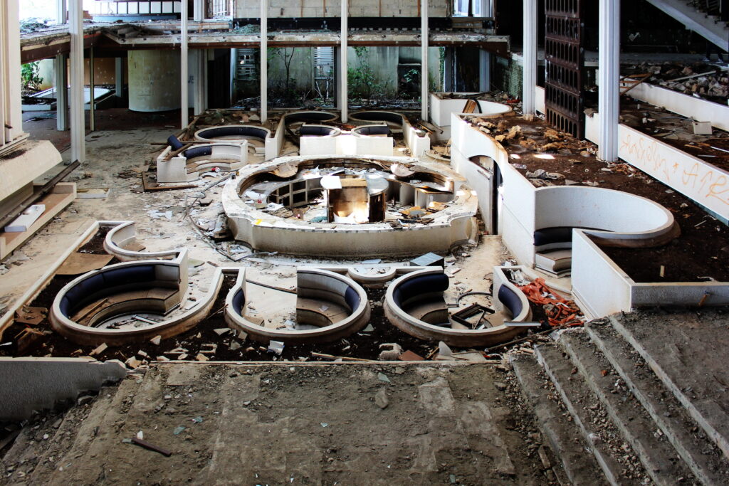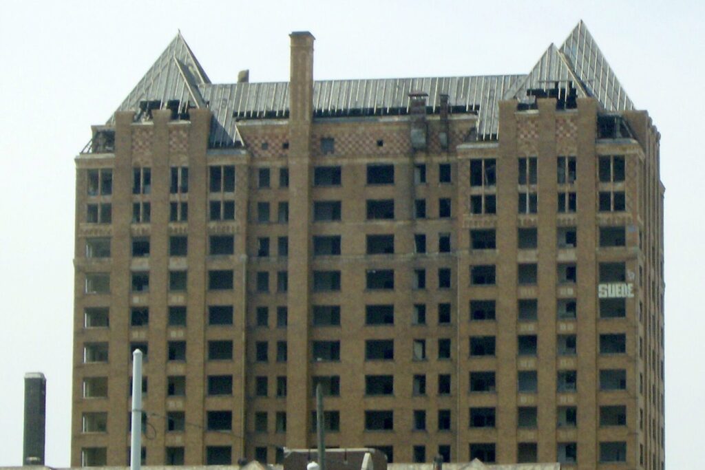 Detroit’s economic struggles eventually affected the property. By the 1990s, the building had fallen into serious decline. The Lee Plaza closed in 1997 and sat abandoned for decades. Its once-grand interior deteriorated as windows broke and water damage spread. In recent years, redevelopment plans have begun moving forward, but for a long time it stood as one of Detroit’s most famous abandoned buildings.