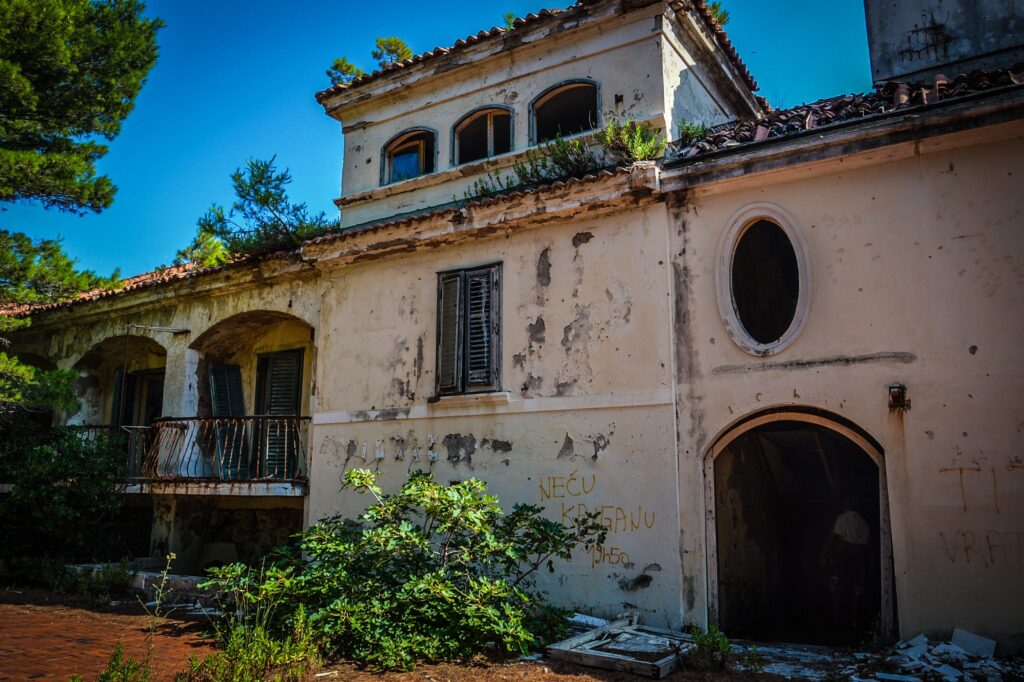 The resort’s fate changed dramatically during the Croatian War of Independence in the early 1990s. Several hotels were damaged during military fighting in the region. After the war, the resort complex was never fully restored. Many of the buildings remain abandoned today, their concrete structures slowly weathering near the shoreline. Despite redevelopment proposals, Kupari has spent decades frozen between its glamorous past and an uncertain future.
