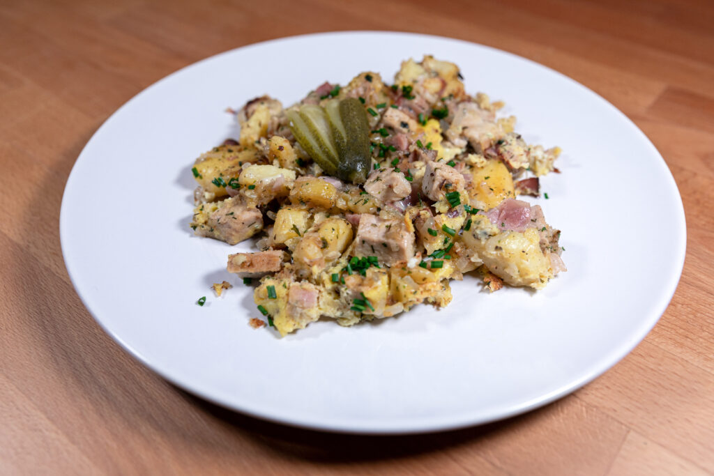 This dish with a fun name was actually a practical way to use up every single scrap in the icebox. It originated in German-American communities and quickly became a winter favorite for its versatility. The base was always fried potatoes and onions, but from there, you added whatever tiny bits of meat were left. A stray piece of sausage, a slice of bacon, or even some chopped deli meat would find a home in the pan.