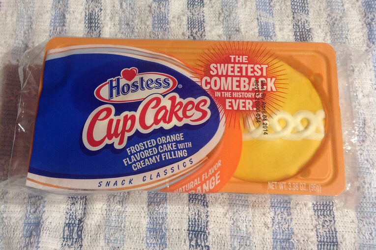 These bright orange cupcakes looked like a party in a wrapper. With their orange-colored frosting and creamy center, they stood out among the chocolate-heavy lineup of snacks. The white swirl on top gave them the same look as the famous Hostess CupCakes, but the citrusy twist made them special.