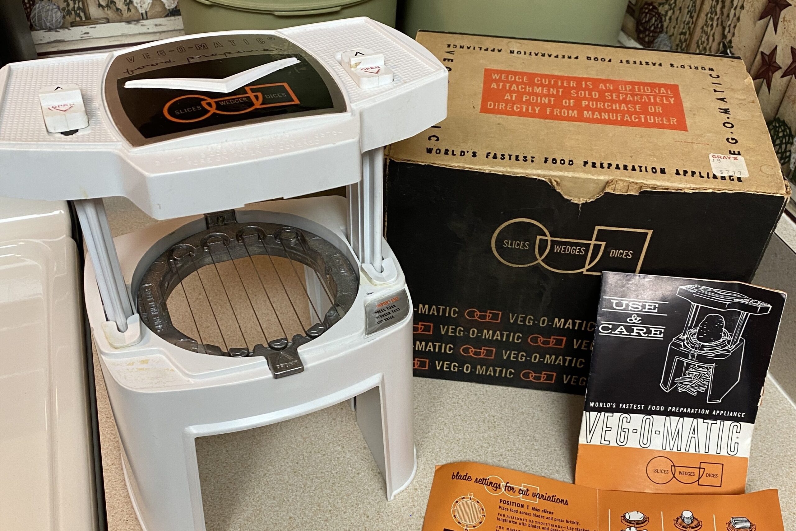The Veg-O-Matic was a kitchen gadget heavily advertised in the 1960s and 1970s with the memorable line, “It slices, it dices.” It promised to make food prep faster and easier with interchangeable blades. The enthusiastic demonstrations made it feel almost too good to be true. Still, it became a major success through mail-order and retail sales.